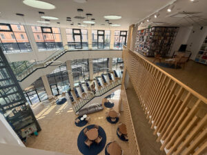 La etajul 1, spațiile au fost reconfigurate pentru birouri administrative și spații de depozitare, un auditorium pentru adulți, săli de lectură, zone pentru training de competențe digitale și zone de expunere de cărți. La etajul 2 a fost amenajată o ieșire pe terasă, o sală de conferințe, o sală de lectură, mediatecă și un studio pentru înregistrări de tip podcast. Toate spațiile sunt adaptate pentru accesul persoanelor cu dizabilități. Totodată, au fost montate 2 lifturi pentru a facilita accesul.