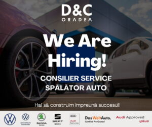 La D&C Oradea, nu oferim doar mașini de top – oferim experiențe. Dacă ești pasionat de domeniul auto, orientat către clienți și îți dorești să faci parte dintr-o echipă profesionistă și dinamică, acum ai ocazia perfectă. Ne mărim echipa și căutăm: