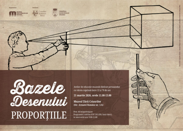 Muzeul Țării Crișurilor Oradea – Complex Muzeal, cu sprijinul Consiliului Județean Bihor și al Primăriei Municipiului Oradea, organizează un atelier de educație muzeală intitulat „Bazele desenului. Proporțiile”, dedicat persoanelor cu vârste între 12 și 70 de ani.