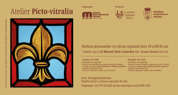 Muzeul Țării Crișurilor Oradea – Complex Muzeal organizează, cu sprijinul Consiliul Județean Bihor și al Primăria Municipiului Oradea, atelierul „Picto-vitraliu”, dedicat persoanelor cu vârste cuprinse între 10 și 80 de ani.