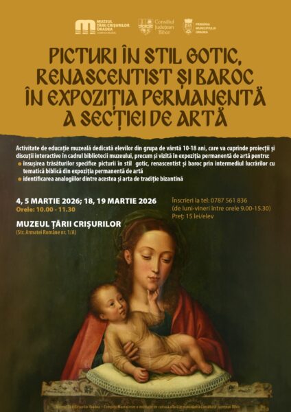 Muzeul Țării Crișurilor Oradea – Complex Muzeal organizează, cu sprijinul Consiliul Județean Bihor și al Primăria Municipiului Oradea, activitatea de educație muzeală intitulată „Picturi în stil gotic, renascentist și baroc în Expoziția permanentă a Secției de Artă”.