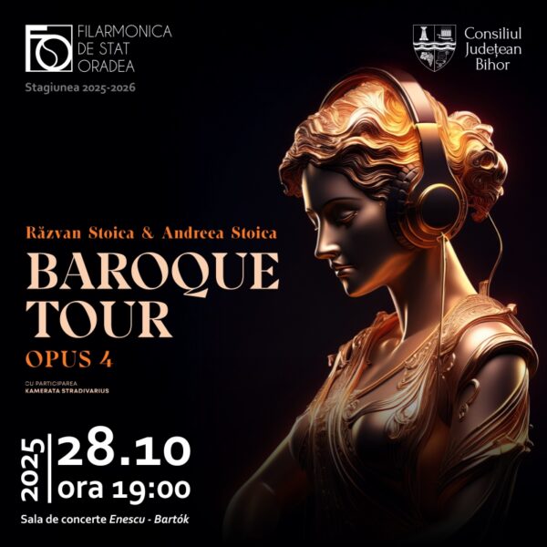 Căldura și rafinamentul repertoriului baroc vor răsuna la Filarmonica de Stat Oradea în cadrul Turneului Național „Baroque Tour – Opus 4”, susținut de violonistul Răzvan Stoica, pianista Andreea Stoica și ansamblul Kamerata Stradivarius.