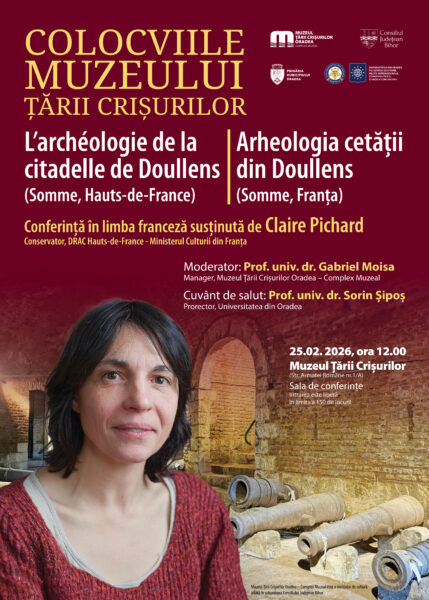 Muzeul Țării Crișurilor Oradea – Complex Muzeal organizează miercuri, 25 februarie 2026, o nouă sesiune a Colocviilor Muzeului Țării Crișurilor, cu tema „Arheologia cetății din Doullens (Somme, Franța)”. Evenimentul va avea loc de la ora 12:00, în Sala de conferințe a muzeului (Str. Armatei Române nr. 1/A), și va fi susținut de Claire Pichard, conservator în cadrul DRAC Hauts-de-France – Ministerul Culturii din Franța.