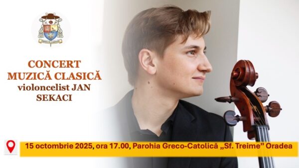 Episcopia Greco-Catolică de Oradea împreună cu Parohia „Sfânta Treime” din cartierul Nufărul, are plăcerea de a invita publicul orădean la un concert de muzică clasică deosebit, susținut de renumitul violoncelist Jan Sekaci, originar din Oradea. Evenimentul va avea loc în data de 15 octombrie 2025, începând cu ora 17:00, în biserica „Sfânta Treime” din Nufărul, situată pe strada Grigore Moisil nr. 5, Oradea.