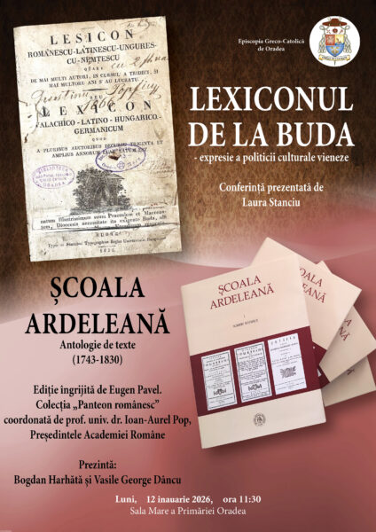 Luni, 12 ianuarie, ora 11:30, în Sala Mare a Primăriei Oradea va avea loc conferința „Lexiconul de la Buda – expresie a politicii culturale vieneze”, susținută de dr. Laura Stanciu. Evenimentul marchează 200 de ani de la apariția primului dicționar românesc modern – o lucrare de temelie a lexicografiei românești și totodată un instrument științific și manifest politico-cultural al Școlii Ardelene.
