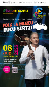 Muzeul Țării Crișurilor Oradea – Complex Muzeal, în parteneriat cu Consiliul Județean Bihor, Primăria Municipiului Oradea, Biblioteca Județeană „Gheorghe Șincai”, Asociația „Prietenii Muzeului Țării Crișurilor”, Asociația „Forumul Bihorean”, Hotel Continental Forum Oradea, Street Coffee Roasters, Wood Box și Podgoriile Dextra, organizează o întâlnire cu Ducu Bertzi, cantautor și folkist. Evenimentul, care face parte din Conferințele Tipografiei de idei, organizat în cadrul programului estival Tipografia de idei | #hailamuzeu, ediția a III-a, va avea loc vineri, 8 august 2025, începând cu ora 21.00, în parcul Muzeului Țării Crișurilor (Str. Armatei Române nr.1/A).