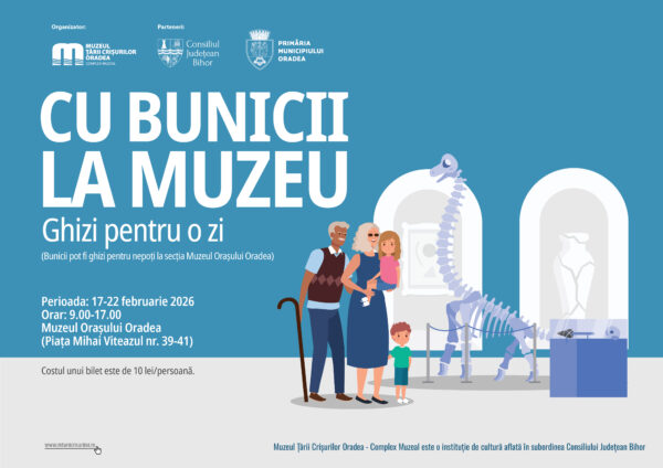 Muzeul Țării Crișurilor Oradea – Complex Muzeal organizează, în parteneriat cu Consiliul Județean Bihor și Primăria Municipiului Oradea, programul educativ „Cu bunicii la muzeu. Ghizi pentru o zi”, dedicat bunicilor și nepoților care doresc să petreacă timp de calitate împreună în vacanța școlară.