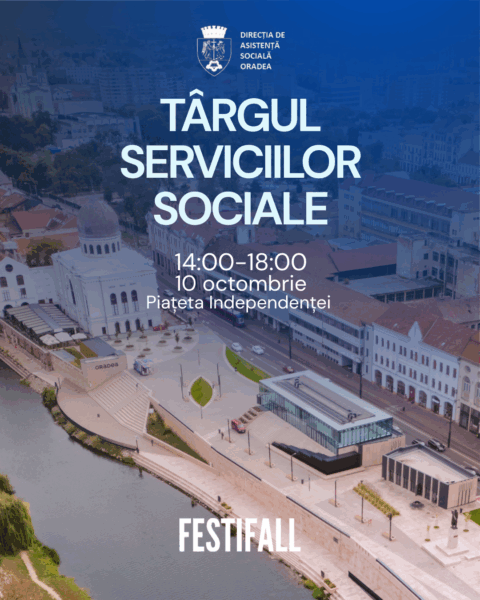 Direcția de Asistență Socială Oradea invită orădenii să participe vineri, 10 octombrie 2025, la Târgul Serviciilor Sociale, un eveniment dedicat solidarității și implicării în comunitate. Târgul va avea loc între orele 14:00 – 18:00, în Piațeta Independenței, în cadrul festivalului Oradea FestiFall.