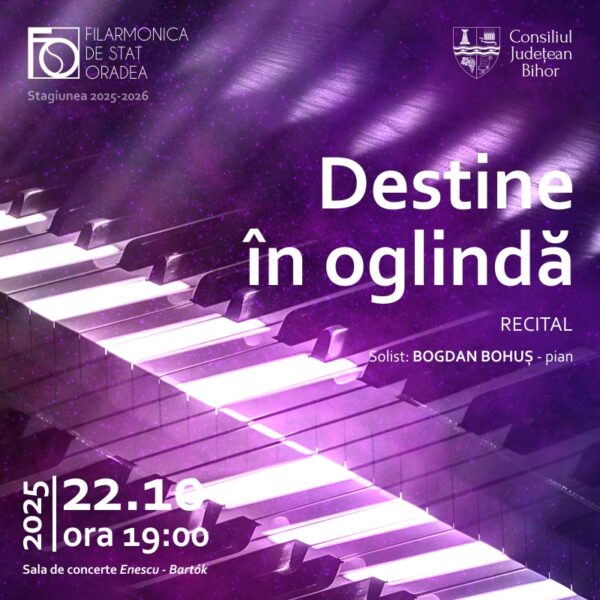 Filarmonica de Stat Oradea invită publicul miercuri, 22 octombrie 2025, ora 19:00, la un recital de pian excepțional intitulat „Destine în oglindă”, susținut de pianistul Bogdan Bohuș.