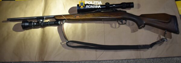 Cei doi, un bărbat de 45 de ani din Lăzăreni și altul de 57 de ani din Oradea, transportau într-un autoturism resturi de căprior. În timpul verificării, polițiștii au descoperit asupra lor o armă de vânătoare cu lunetă, 10 cartușe și un dispozitiv de reducere a zgomotului – amortizor – deținut ilegal. Autoturismul folosit a fost indisponibilizat, iar bunurile ridicate de polițiști în vederea continuării cercetărilor.