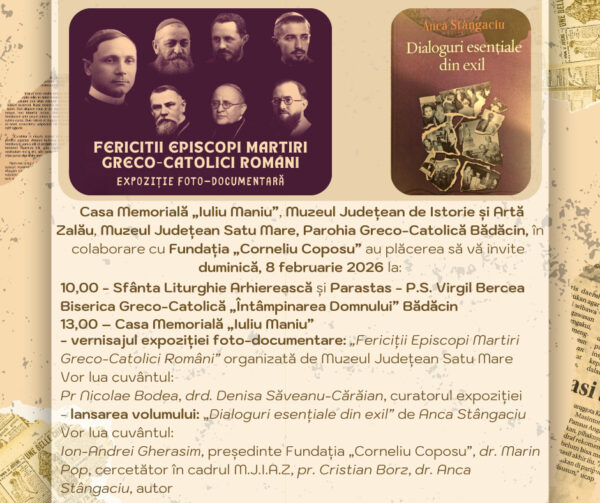 Evenimentul va cuprinde lansarea volumului „Dialoguri esențiale din exil”, semnat de dr. Anca Stângaciu, precum și vernisajul expoziției foto-documentare „Fericiții Episcopi Martiri Greco-Catolici Români”, un proiect itinerant de mare impact cultural și spiritual.
