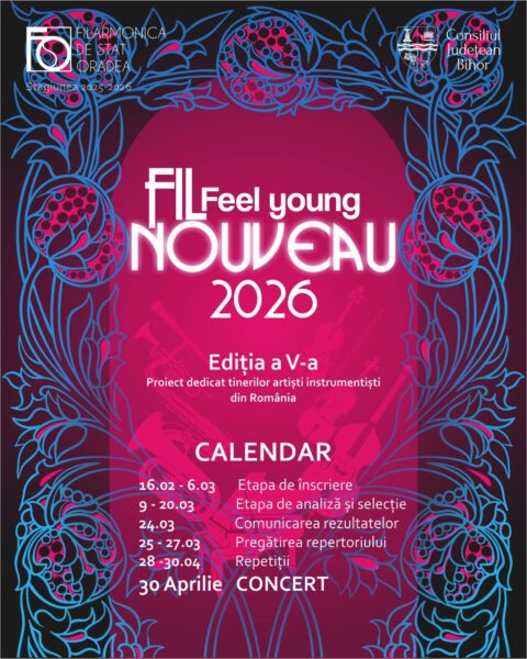Filarmonica de Stat Oradea anunță lansarea ediției a V-a a proiectului cultural „FIL NOUVEAU | Feel young”, o inițiativă dedicată tinerilor artiști instrumentiști din România, care le oferă oportunitatea de a evolua pe scenă alături de Orchestra Filarmonicii de Stat Oradea.