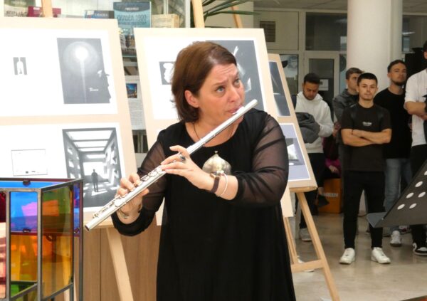 Solo și împreună cu două studente, Daniela Cobolaș și Adina Botănel, conf. univ. dr. Ariadna Mircescu, directorul Departamentului de Muzică al Facultății de Arte, a susținut un adevărat recital de flaut. „Pastel de toamnă” de V. Jianu, „Cântec vechiu” de P. Constantinescu, „O idilă” de P. Elinescu, două valsuri de Weber și Valsul 2 de Shostakovich, au spus o poveste. „Este vorba despre copilărie, nostalgii, dragoste, nuntă și, mai ales, despre multă emoție”, a explicat conf. univ. dr. Ariadna Mircescu.
