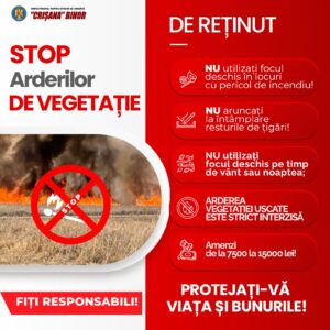 Reamintim bihorenilor că incendiile de vegetație uscată se extind rapid pe suprafețe mari, periclitând viețile și bunurilor oamenilor. De asemenea, arderile de vegetație uscată poluează aerul, au consecințe majore asupra biodiversității terenurilor supuse unor astfel de practici, ducând la deteriorarea habitatelor păsărilor şi a animalelor și compromit calitatea solului întrucât este distrus stratul de humus de la suprafața acestuia, focul afectând toți compușii organici din sol care îi conferă fertilitate.