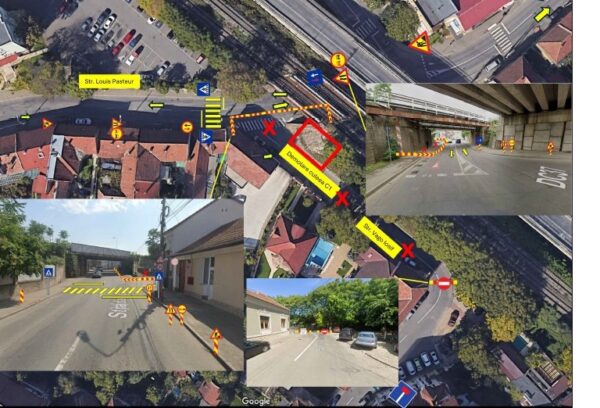 Pe strada Louis Pasteur, traficul rutier se va desfășura în continuare în ambele sensuri. Menționăm că banda de circulație aferentă culeei C1 va fi temporar îngustată, pentru executarea lucrărilor de forare, armare și betonare a piloților, precum și pentru lucrările de reconstrucție a culeei.