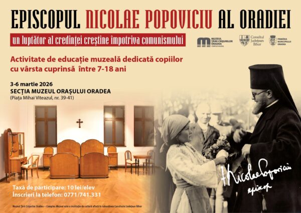 Muzeul Țării Crișurilor Oradea – Complex Muzeal organizează, în parteneriat cu Consiliul Județean Bihor și Primăria Municipiului Oradea, o activitate de educație muzeală dedicată uneia dintre personalitățile marcante ale Bisericii Ortodoxe din vestul țării: „Episcopul Nicolae Popoviciu al Oradiei. Un luptător al credinței creștine împotriva comunismului”.