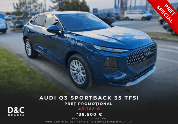 D&C Oradea îți prezintă noul Audi Q3 Sportback, un model care îmbină perfect versatilitatea unui SUV compact cu designul modern și tehnologia de ultimă generație. Disponibil la preț special, în mai multe configurații și motorizări, atât în versiunea SUV, cât și Sportback, noul Q3 este pregătit să răspundă oricărui stil de viață activ.