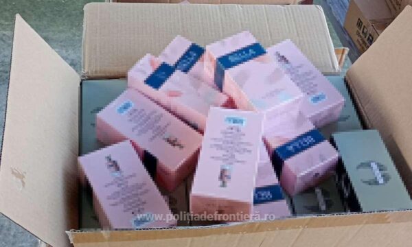 În urma efectuării controlului asupra mijlocului de transport, colegii noștri au descoperit mai multe cutii în interiorul cărora se aflau 570 de parfumuri, care purtau însemnele unor mărci cunoscute, susceptibile a fi contrafăcute, pentru care șoferul nu a putut prezenta documente de proveniență.