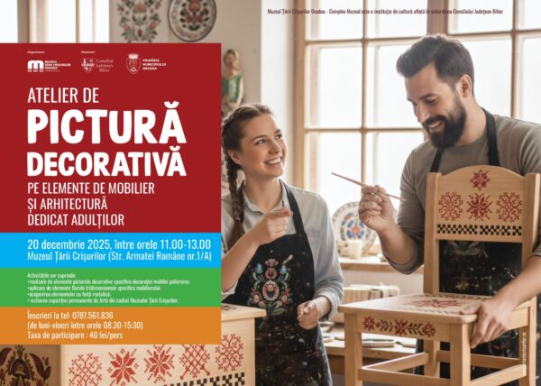 Țării Crișurilor Oradea – Complex Muzeal organizează în parteneriat cu Consiliul Județean Bihor și Primăria Municipiului Oradea, atelierul de educație muzeală Pictură decorativă pe elemente de mobilier și arhitectură.