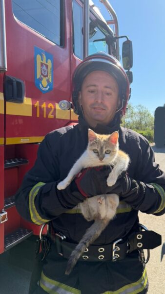 Un cetățean, care locuia în imediata apropiere a locului intervenției, a precizat salvatorilor că animalul se afla blocat pe stâlp de aproximativ două zile, fiind vizibil speriat și epuizat.