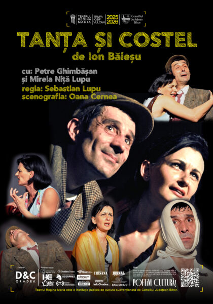 Trupa „Iosif Vulcan” a Teatrului Regina Maria din Oradea anunță premiera spectacolului „Tanța și Costel” de Ion Băieșu, în regia lui Sebastian Lupu, programată miercuri, 4 martie, de la ora 19:00, la Sala Transilvania.