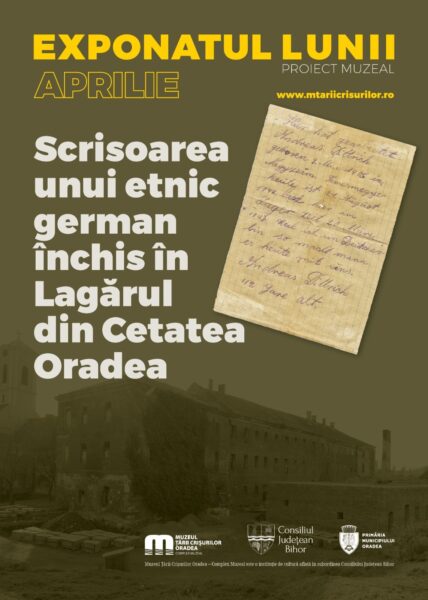Piesa centrală a lunii aprilie este o scrisoare aparținând unui etnic german internat în Lagărul din Cetatea Oradea, document istoric ce va putea fi vizionat în perioada 1–30 aprilie, între orele 10:00–18:00, la Secția Muzeul Orașului Oradea, în Piața Mihai Viteazul nr. 39–41, Sala cu grifoni.