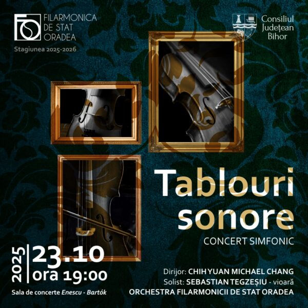 La concertul Tablouri sonore de joi, 23 octombrie, ora 19.00, de la sala de concerte „Enescu – Bartók”, publicul meloman este invitat să își imagineze, să depășească percepția sonoră și să își creeze imagini proprii. La începutul concertului, reprezentările vizuale vor fi sugerate de către lucrarea Magyar képek (Tablouri maghiare) de Béla Bartók. În continuare, Concertul de vioară și orchestră nr. 5 de Wolfgang Amadeus Mozart și Simfonia a IV-a de Piotr Ilici Ceaikovski vor da frâu liber imaginației. Tablourile sonore vor fi „pictate” de către dirijorul Michael Chang și solistul Sebastian Tegzeșiu, alături de Orchestra Filarmonicii de Stat Oradea.