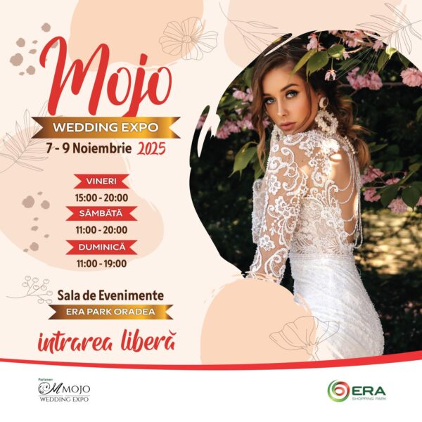 Cel mai așteptat târg de nunți – Mojo Wedding Expo – revine în această toamnă la ERA Park Oradea, în perioada 7–9 noiembrie 2025 și se va extinde de sub cupola centrului comercial din Calea Aradului nr. 62 în toată galeria și în sala de evenimente.