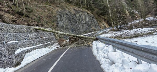 Intervenție rapidă a jandarmilor montani bihoreni, sâmbătă, 14 februarie, în zona Stațiunea Stâna de Vale, după ce un sector de drum a fost blocat de bolovani și un arbore de mari dimensiuni căzut pe carosabil.