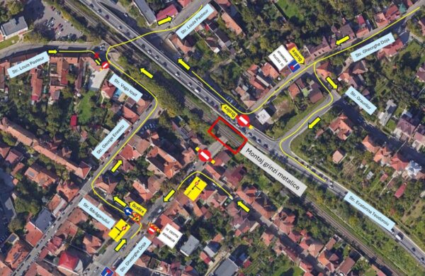 Circulația rutieră va fi închisă sâmbătă, 18 aprilie 2026, între orele 7:00 și 22:00, pe strada Gheorghe Doja din Oradea, în zona pasajului feroviar, ca urmare a lucrărilor de montare a grinzilor metalice.