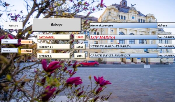 În urma extragerii computerizate, câștigătoare a fost desemnată Lup Marina, domiciliată pe strada Iosif Vulcan. Conform regulamentului, au fost stabilite și două rezerve, care vor putea beneficia de premiu în cazul în care acesta nu este revendicat în termenul prevăzut.