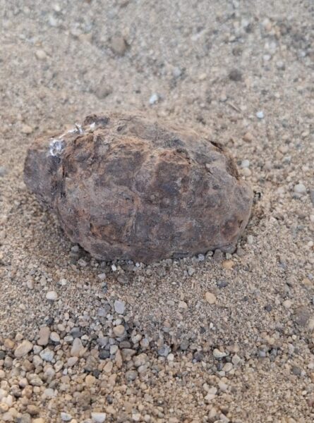– un corp cilindric cu vârf conic, de obicei ruginit sau acoperit cu pământ – proiectil/obuz;