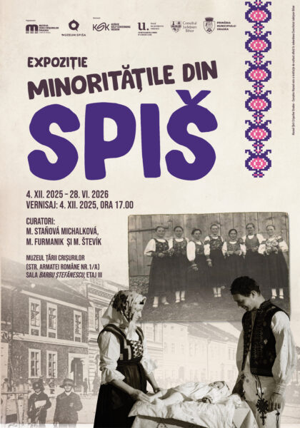 Muzeul Țării Crișurilor Oradea – Complex Muzeal și Múzeum Spiša (Slovacia), în parteneriat cu Regiunea autonomă Košice (Slovacia), Consiliul Slovac pentru Susținerea Artei, Consiliul Județean Bihor și Primăria Municipiului Oradea, organizează vernisajul expoziției Minoritățile din Spiš. Evenimentul se va desfășura joi, 4 decembrie 2025, ora 17.00, în Sala Barbu Ștefănescu (etaj III), la Muzeul Țării Crișurilor (Str. Armatei Române nr. 1/A).