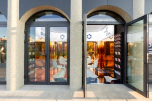 Acest proiect nu își propune să fie doar un simplu punct de informare, ci și o experiență vizuală și senzorială unică, inspirată din arhitectura orașului și transpusă într-un limbaj contemporan, aflat la granița dintre instalație artistică și spațiu funcțional. Designul interior este unul cel puțin spectaculos. Pereții sunt placați cu cupru și reușesc să transforme lumina și peisajul urban într-un dialog permanent cu exteriorul, iar pardoseala colorată în nuanțele identitare ale brandului Visit Oradea aduce energie și dinamism. Mobilierul alb, cu forme fluide, completează atmosfera, oferind repaus vizual într-un cadru vibrant și modern.