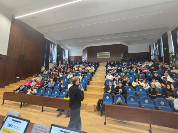 Sala a fost plină de studenți dornici să afle ce înseamnă, în mod real, antreprenoriatul – între curaj, eșec și reușită.